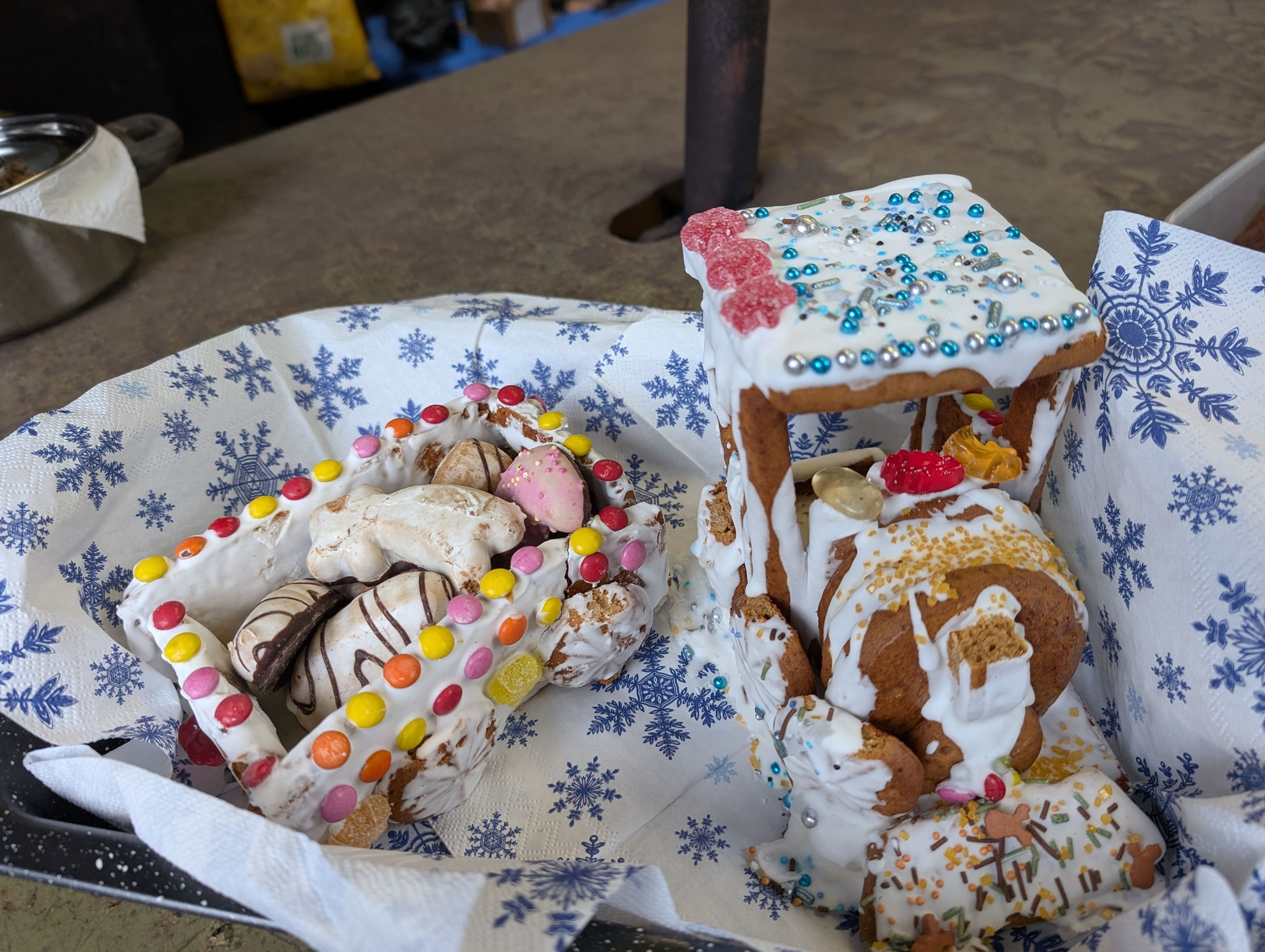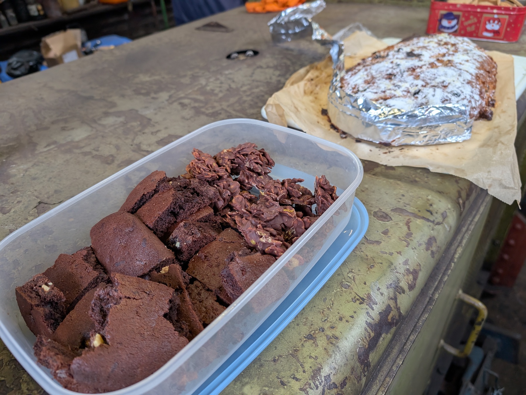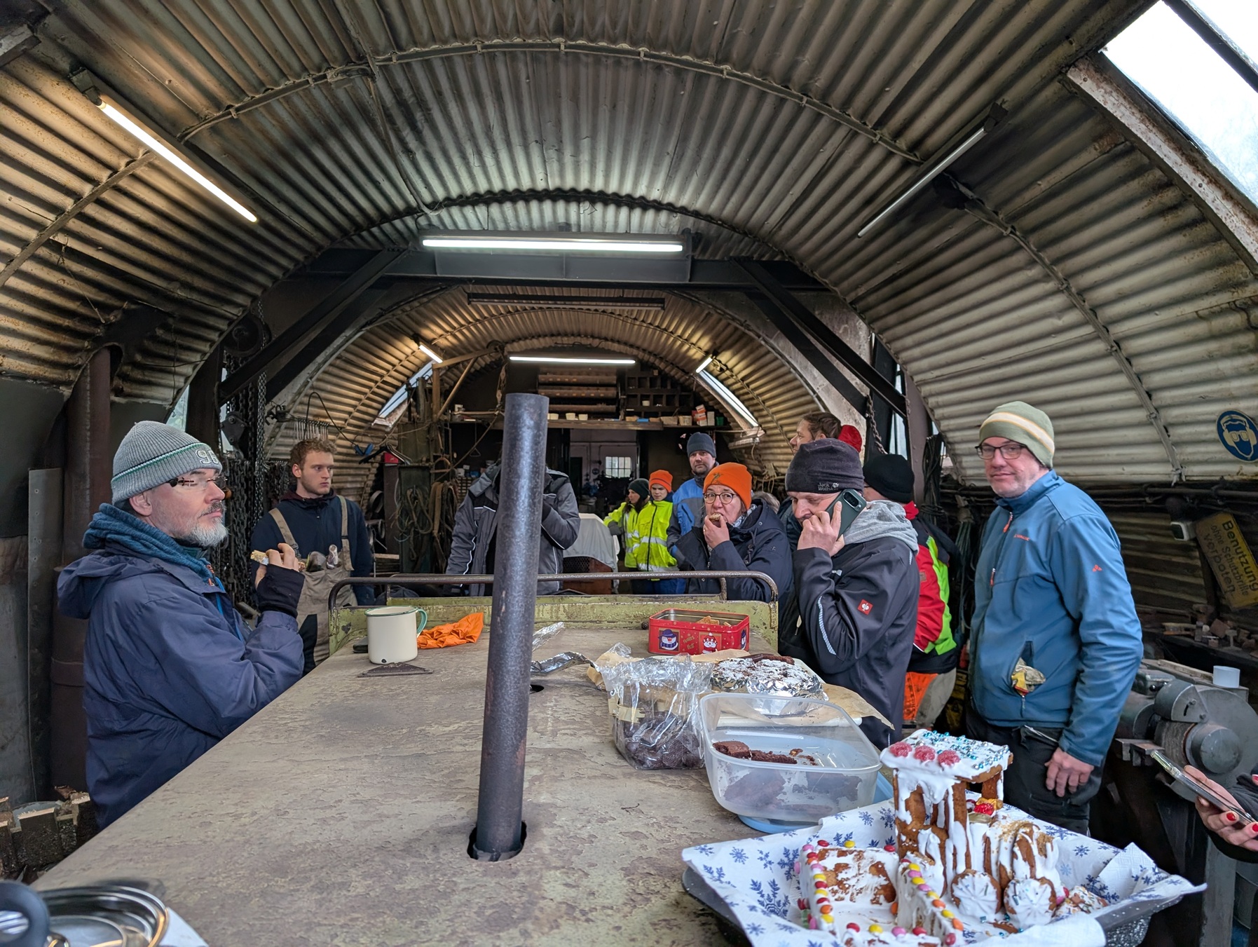 Am frühen Nachmittag waren wir müde, aber glücklich. Zurück am Betriebshof wartete die wohlverdiente Stärkung: Franzis legendäre Schmalzstullen, schwedische Kekse von Torsten, Kuchen von Jade, Stollen von Jens, Snacks von Traute und – ganz passend – Torfbahn-Lebkuchen von Herbert und Paulina