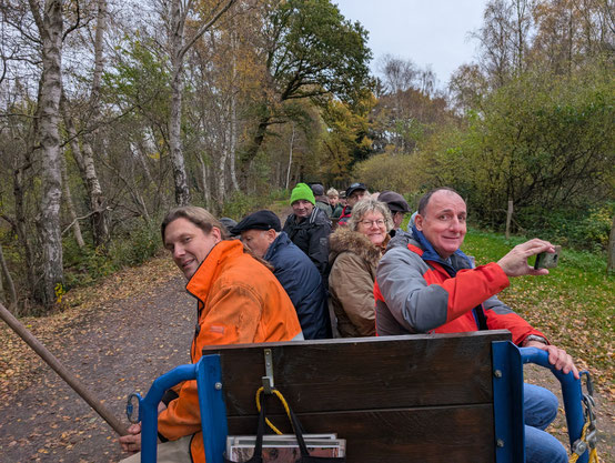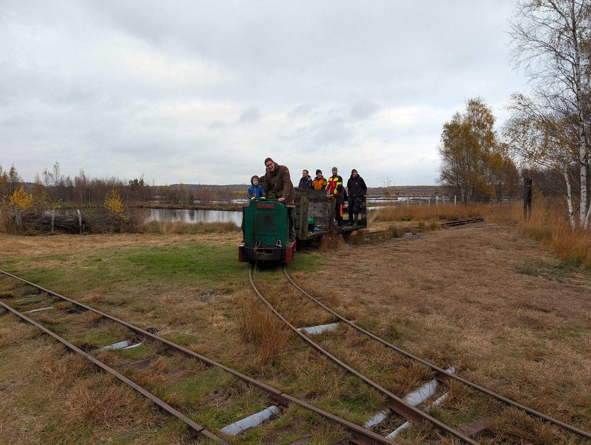 Im Anschluss ging es mit der Torfbahn ins Moor hinein. Dabei wurden Besucherkonzepte und mögliche Wegeführungen erörtert und diskutiert. Auch behördliche Themen wurden angesprochen und Erfahrungen ausgetauscht. Am Ende dauerte der Besuch nicht wie geplant drei, sondern ganze fünf Stunden – und alle hatten ihren Spaß. Wir Torfbahner bedanken uns herzlich für den Besuch und kommen bestimmt bald einmal mit der eigenen Lok vorbei!