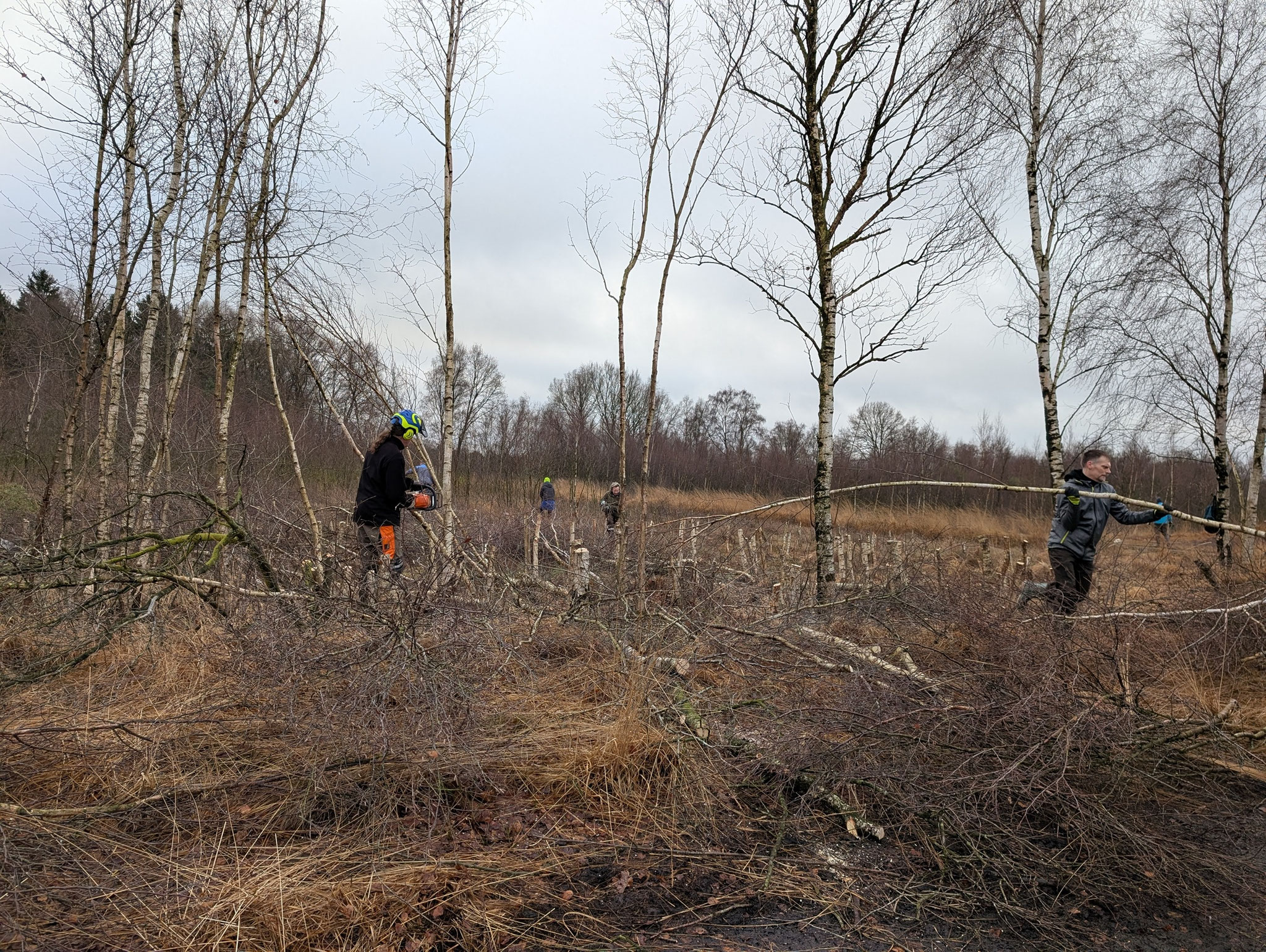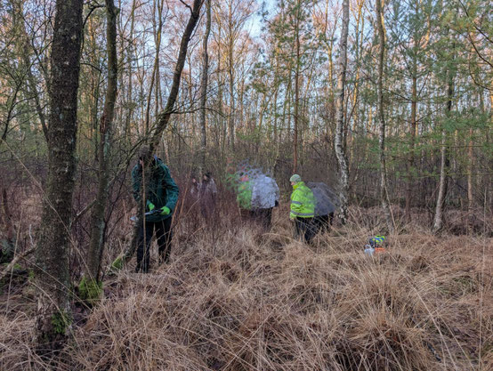 Ziel der Maßnahme war es, den dort wachsenden Gagelstrauch zu unterstützen. Durch umliegende Birken erhielt er nicht mehr ausreichend Licht. Gemeinsam mit den Jugendlichen wurden die Birken entfernt, sodass der Gagelstrauch wieder bessere Licht- und Wachstumsbedingungen vorfindet.