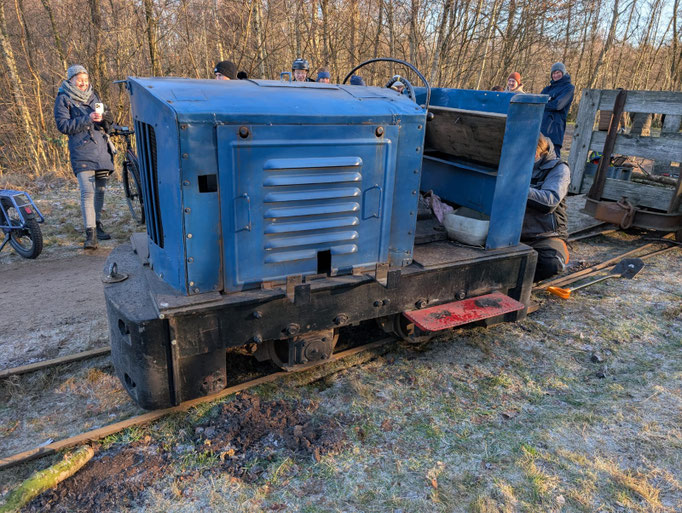 Ein gefrorener Maulwurfshügel an der Weiche Nulldamm meinte bei -5°C , er müsse die Lok mal mit beiden Achsen kurz entgleisen lassen.