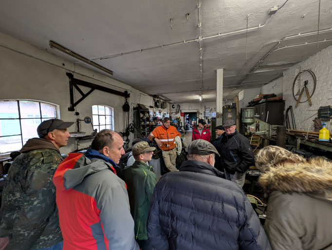 Auf dem Programm stand zunächst eine Besichtigung des Betriebshofes. Jede Maschine wurde begutachtet, und es wurden mit großer Begeisterung technische Daten gesammelt und verglichen. So kann ein Rundgang von nur 200 Metern schon einmal zwei Stunden dauern …