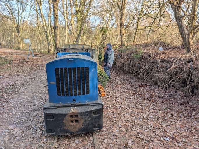Mit der NS1 ging’s los: Reisig und Stämme einsammeln, ab in die Benjeshecken.
