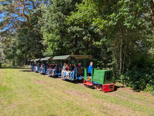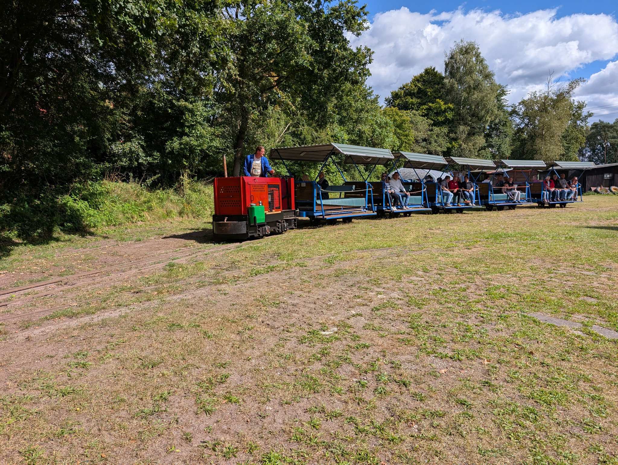 Ein ganz besonderes Highlight sind die Fahrten mit der historischen Torfbahn. Zwischen dem Parkplatz am ehemaligen Torfwerk und unserem Betriebshof pendeln kurze Züge mit wechselnden historischen Lokomotiven – mindestens sechs verschiedene Fahrzeuge sind im Einsatz!