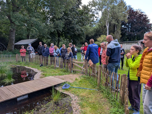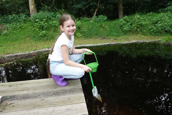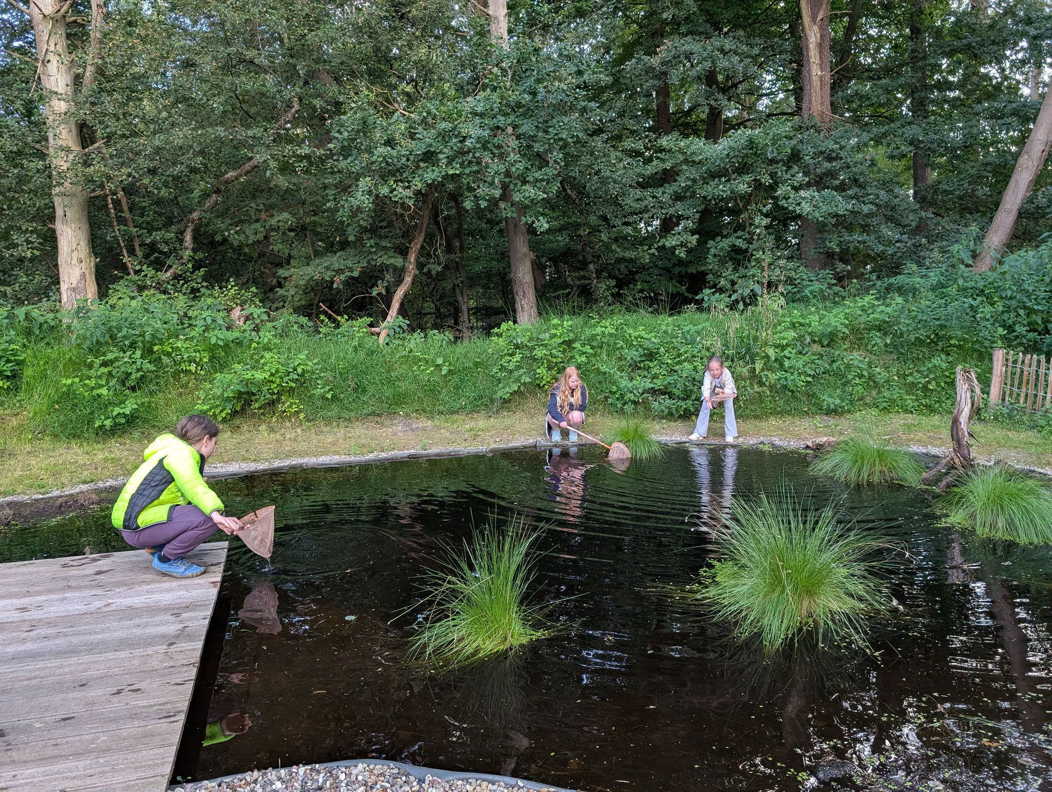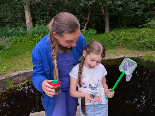 In diesem Jahr haben die Torfbahner einen besonderen Lernort eröffnet: einen Tümpelteich, an dem die Kinder mit großem Eifer das Leben im und am Wasser erforschen. Auch die nahegelegene Wiese wird regelmäßig auf der Suche nach Insekten und Pflanzen durchstreift. Damit die kleinen Forscher dafür gut ausgestattet sind, konnte nun neues Material angeschafft werden. Über das Förderprogramm AktivRegion Holsteiner Auenland standen 500 Euro zur Verfügung. Von diesem Geld wurden Kescher, Becherlupen, Modelle des Libellenlebenszyklus, Schalen und sogar ein pH-Messgerät gekauft. Schon kurz nach der Lieferung kamen die Werkzeuge zum Einsatz: Kinder aus verschiedenen Kindergärten testeten begeistert die neuen Möglichkeiten. Überraschend war für die Torfbahner, dass auch Erwachsenengruppen beim Keschern und Entdecken der Insektenwelt nicht minder viel Freude zeigten. Mit der neuen Ausstattung können die kleinen und großen Gäste der Torfbahn nun noch intensiver in die Welt der Natur eintauchen – und lernen dabei spielerisch, wie spannend Forschung sein kann. Das Angebot kann durch Schulen und Kindergärten ab sofort auch separat bei der Torfbahn gebucht werden.