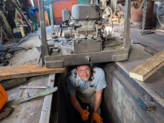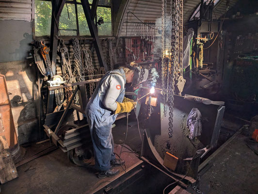 Nach vielen Jahren im Betrieb zeigen unsere Torfbahn-Loren deutliche Spuren. Die Lore HZ2 steht nun vor einer Rundumerneuerung. Dafür steht sie jetzt in der Nissenhütte – unser Torfbahnlorenerneuerungskompetenzzentrum. Einige offene Kanten werden verschweißt, das Holz wurde komplett erneuert, neue Bänke wurden eingebaut, eine Achse ausgetauscht und die Stahlteile neu konserviert. In den kommenden Tagen werden die letzten Arbeiten abgeschlossen.Auf dem Betriebshof wurde für ein Fundament eine Grube mit den Maßen 11m x 13m x 1,20m mit Hilfe von zwei Baggern ausgehoben. Außerdem wurde das gesamte Sägegut mit dem alten Deutz-Trecker eingesammelt und abtransportiert. Auch im Moorbereich geht es weiter. Bis zum 28.02.2025 wurde fleißig gesägt.