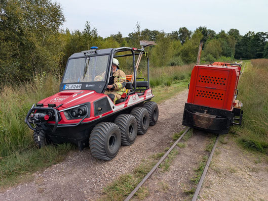 Wir fahren gemeinsam mit der Torfbahn zum Einsatzort.